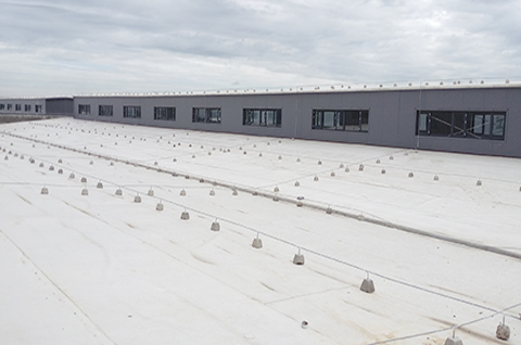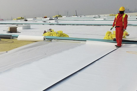 本系統是采用TPO防水卷材,直接粘貼于金屬面板與屋面節點作業面,卷材搭接采用熱熔焊接從而形成整體無縫防水層,其材料具有耐高溫、抗老化、低溫柔性強,使用壽命長等特點,完全適應金屬板變形,是當今金屬屋面防水領域中品質優良的高端防水系統。